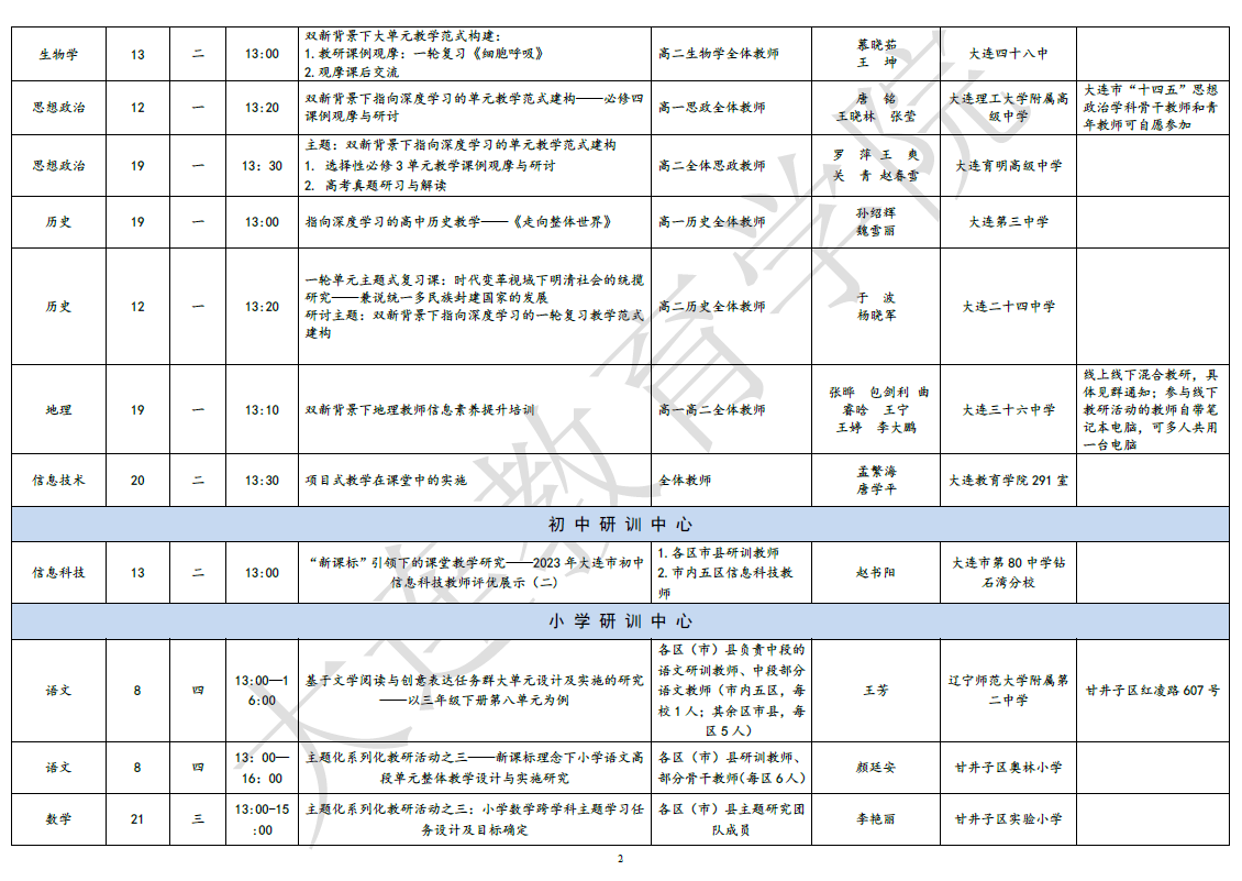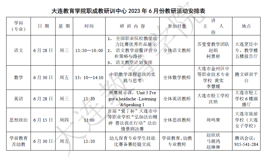 大連教育學(xué)院2023年6月教研活動(dòng)一覽表