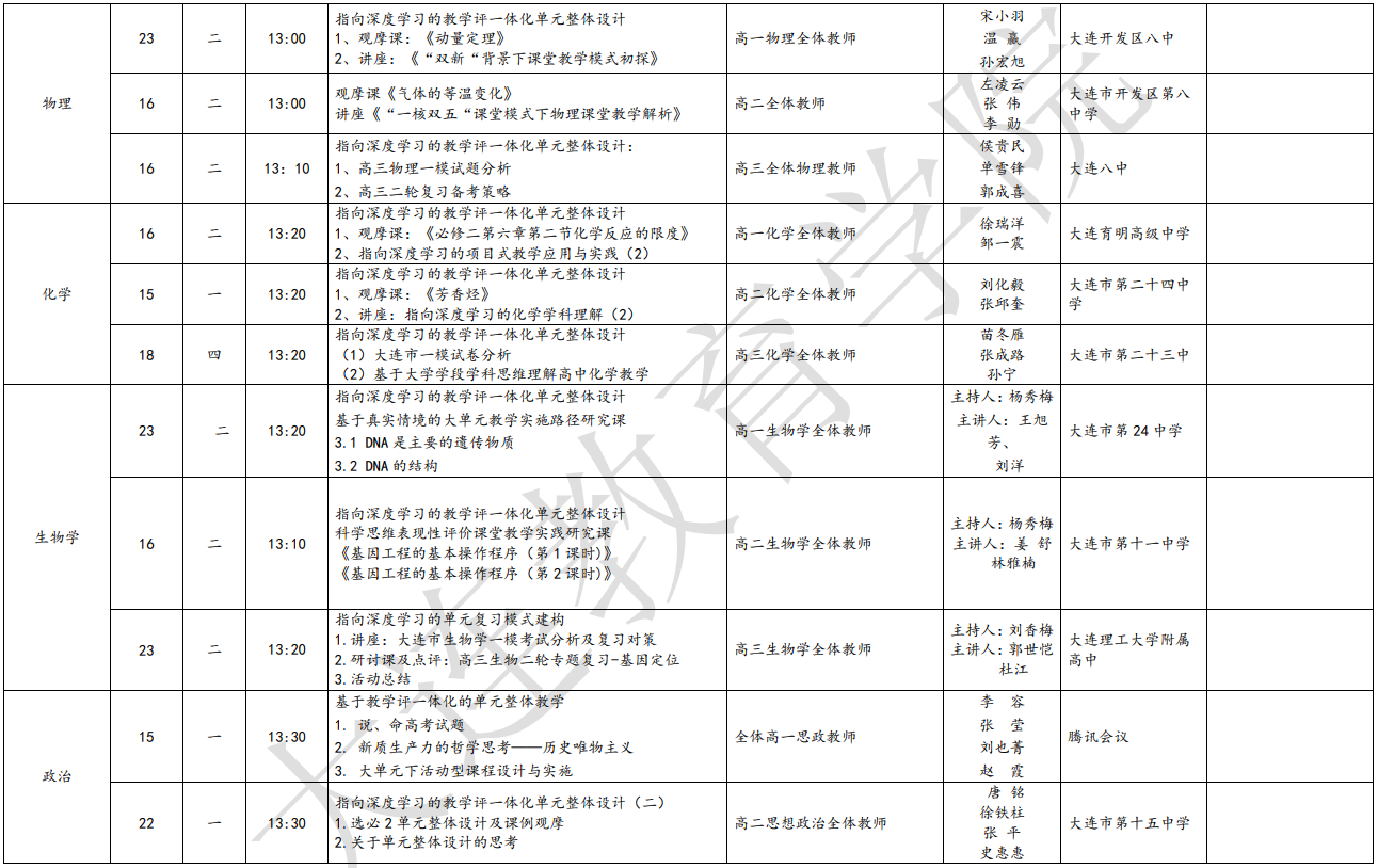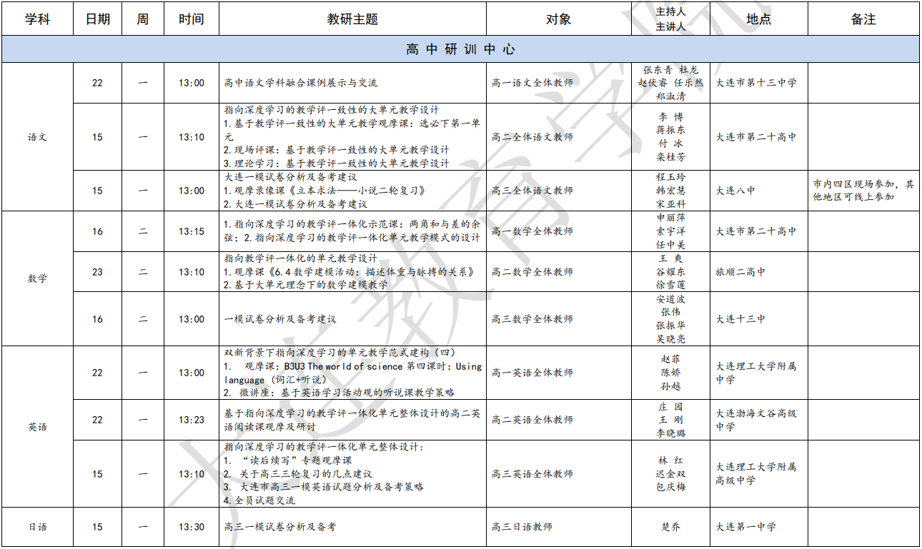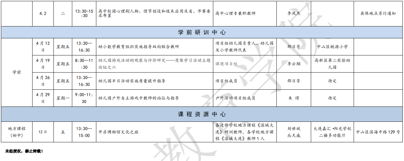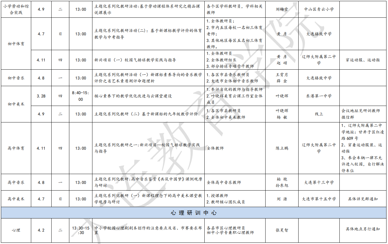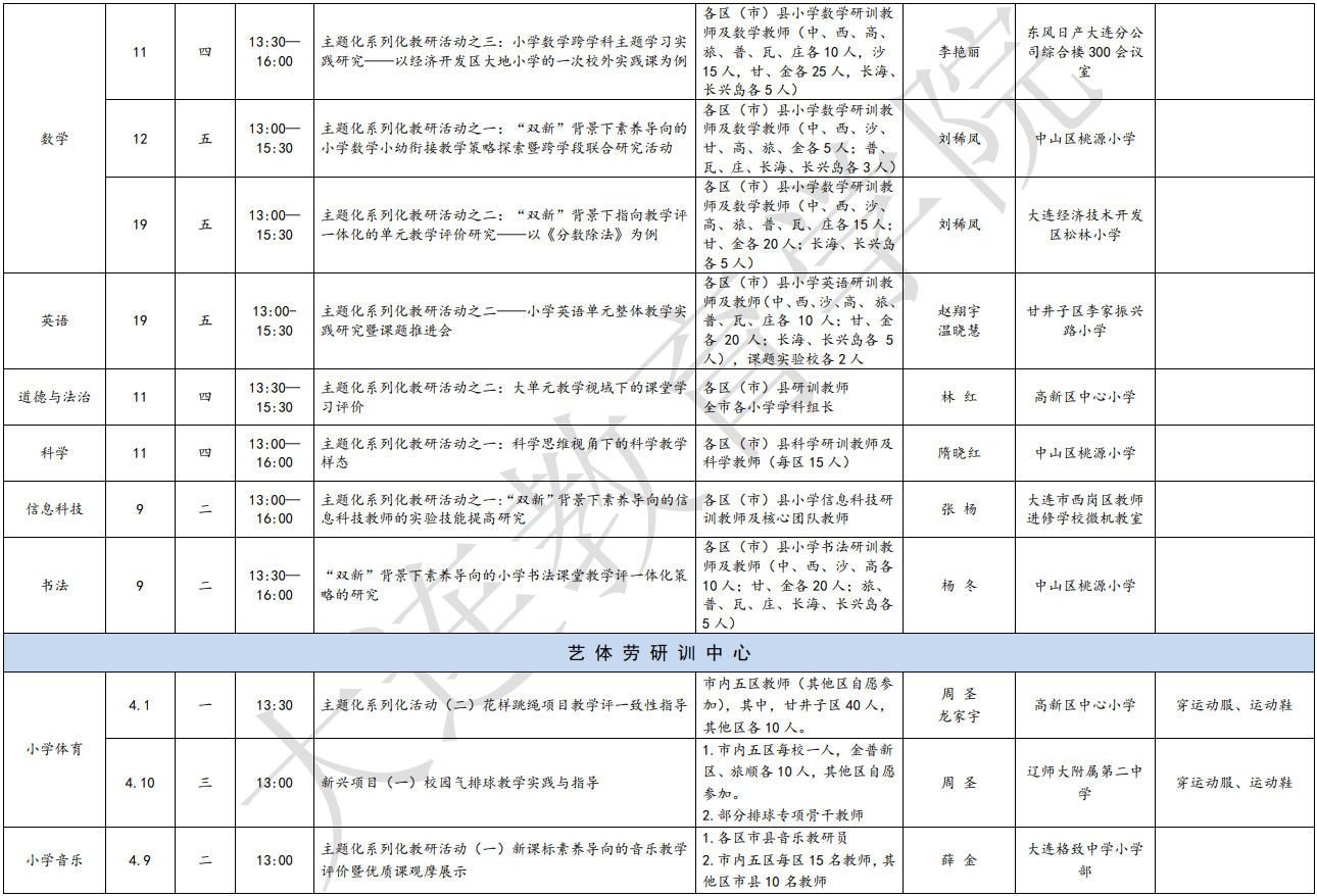 大連教育學院2024年4月教研活動一覽表