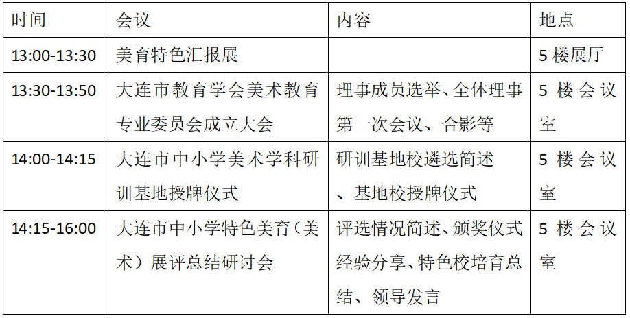 為深入貫徹落實《教育部關于全面加強和改進新時代學校美育工作的意見》精神,深化大連市美術教育改革,推動區(qū)域美育高質(zhì)量發(fā)展,大連教育學院藝體勞研訓中心決定召開大連市美術教育專業(yè)委員會成立大會暨中小學美術學科研訓基地校及美育(美術)特色展評總結研討會。本次會議旨在匯聚全市美術教育工作者、專家學者及一線教師,共同搭建專業(yè)化交流平臺,凝聚美育發(fā)展共識,探索新時代美術教育創(chuàng)新路徑。