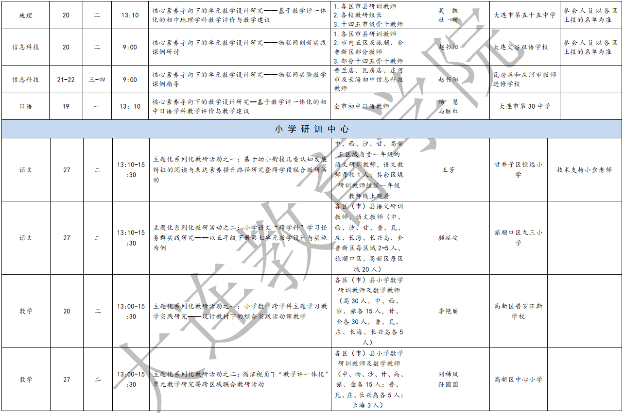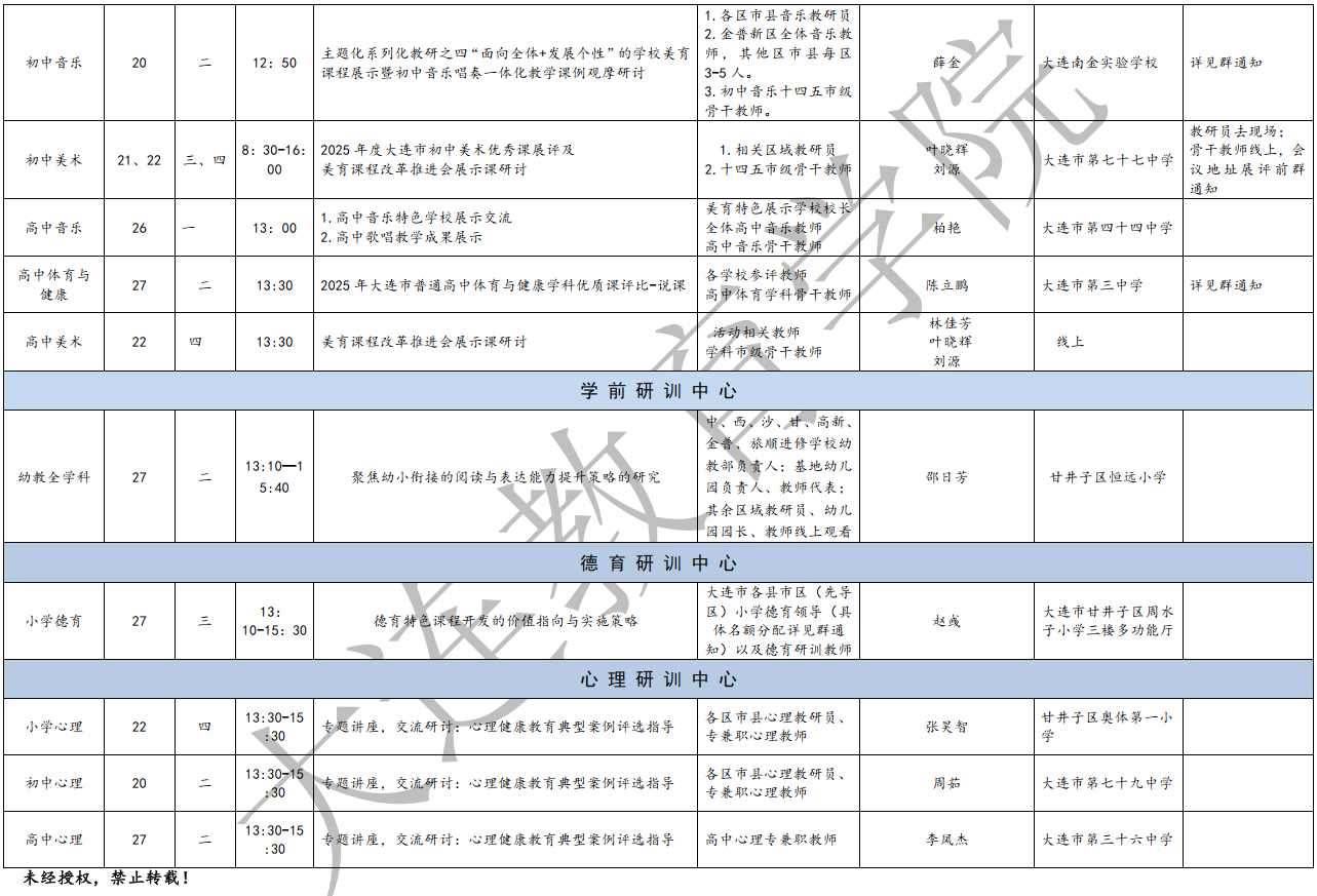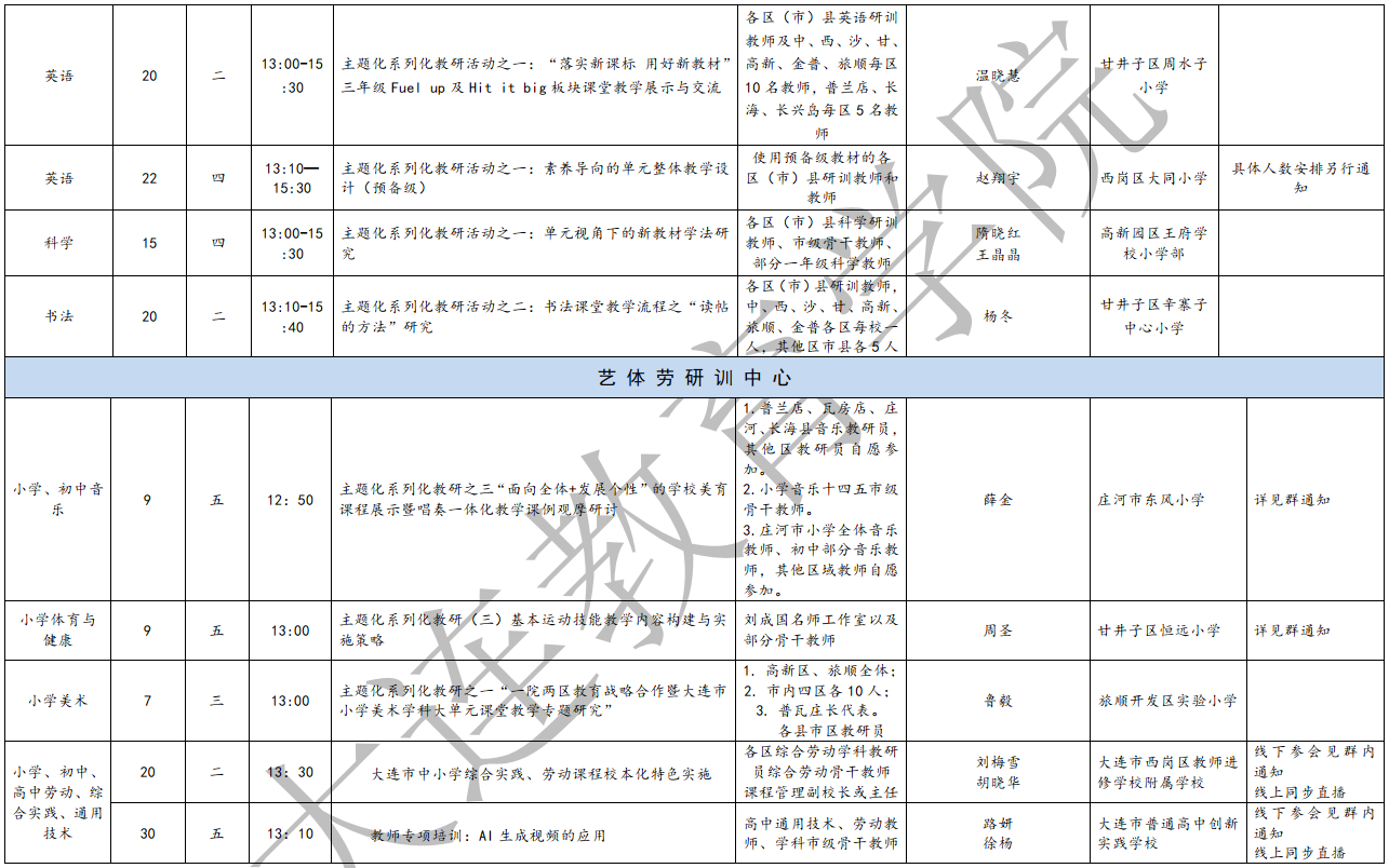 大連教育學院2025年5月教研活動一覽表