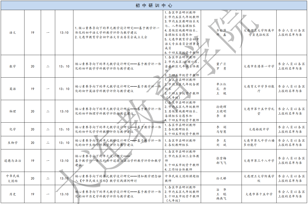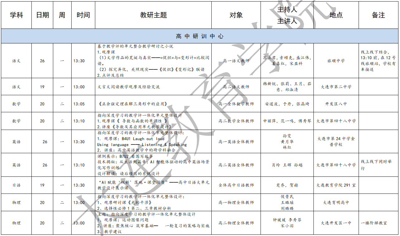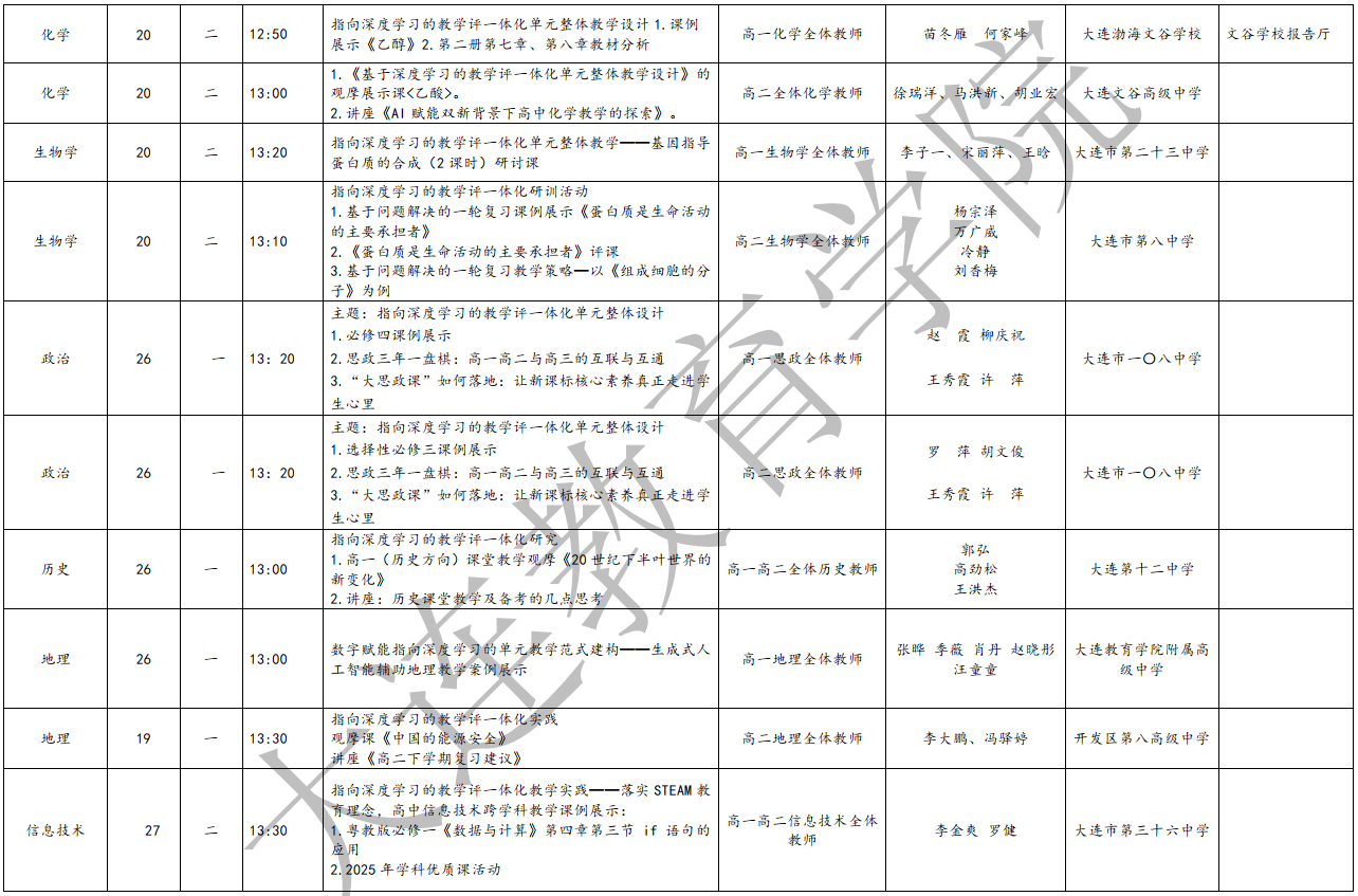 大連教育學院2025年5月教研活動一覽表