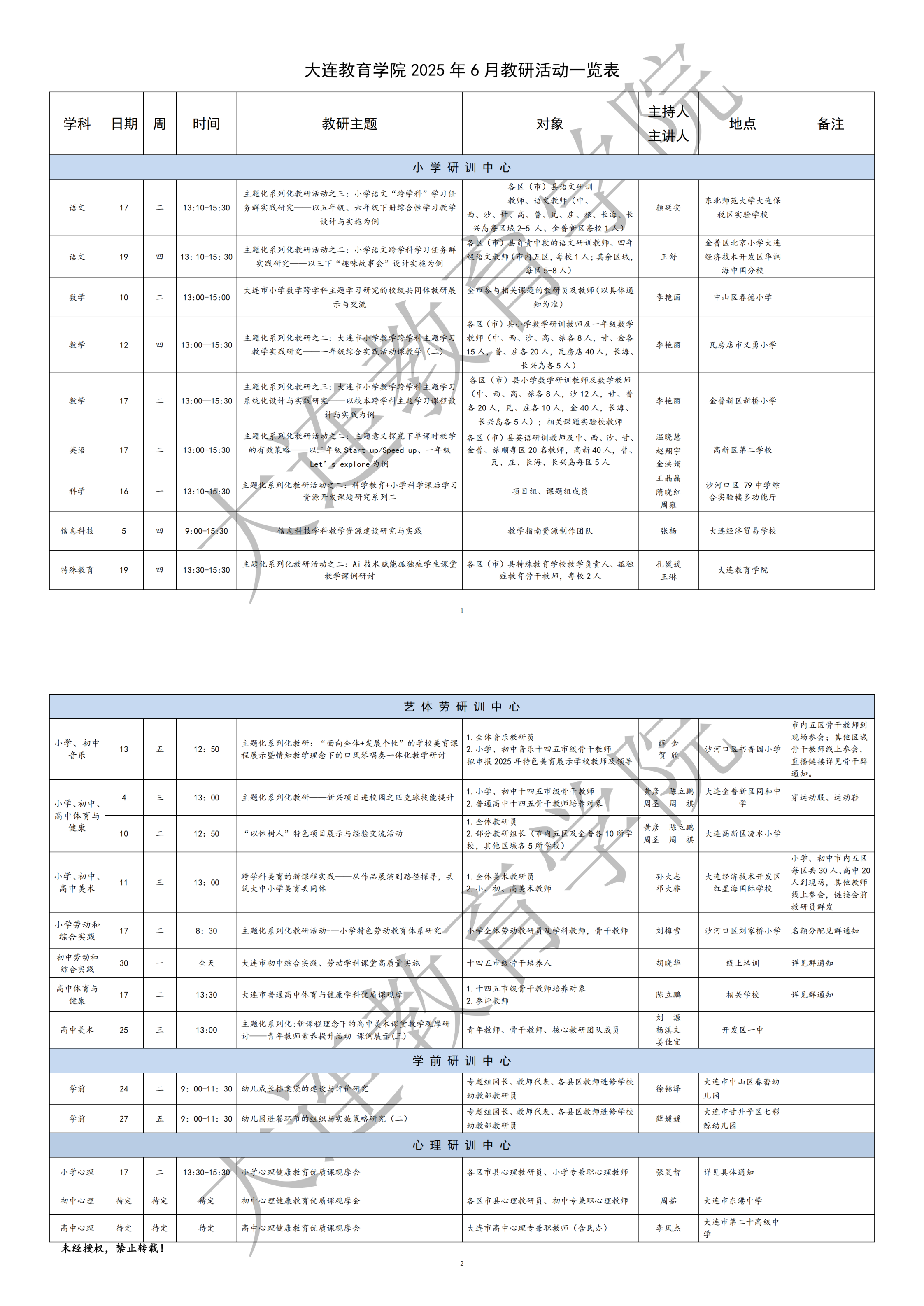 大連教育學院 2025 年 6 月教研活動一覽表